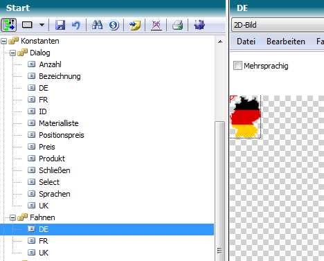 Das Bild des Toolbar-Eintrages wird über die Bildkonstante Fahnen.DE gesetzt.