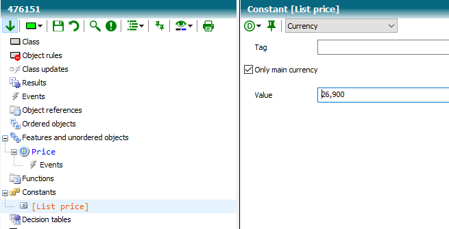 Now go into each material number and override the constant C and enter the main currency price. Check the Price feature to see if only the constant [List price] is actually initialized.